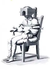 He also invented two mechanical devices for the treatment of the insane: a “tranquilizing chair,” in which the patient’s “body is immobilized by straps at the shoulders, arms, waist, and feet [and] a box-like apparatus is used to confine the head,” and a “gyrator,” “which was a horizontal board on which torpid patients were strapped and spun to stimulate blood circulation.”
